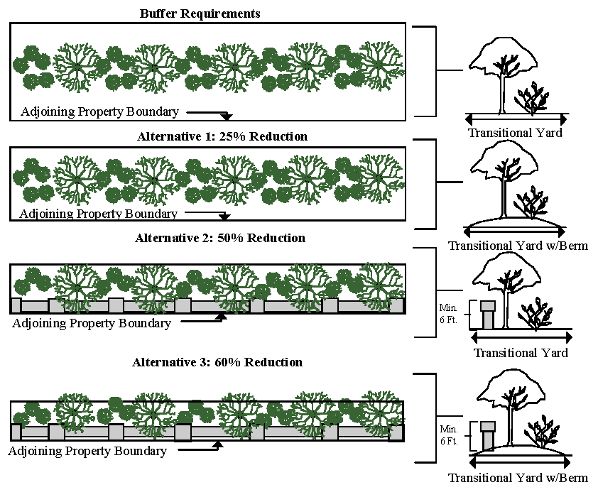 | (a) Buffering materials shall provide an opaque buffer to create a strong impression of a spatial separation and to preclude visual contact. | |||