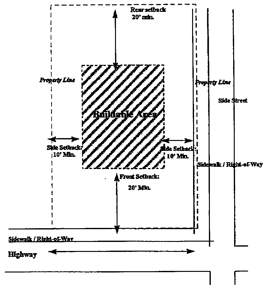 Minimum Front Yard Depth: Fifty (50) feet; although stands or displays of seasonal agricultural produce or other permitted commercial activities may be located within the minimum front yard area but no closer to the nearest street right-of-way than ten (10) feet.
