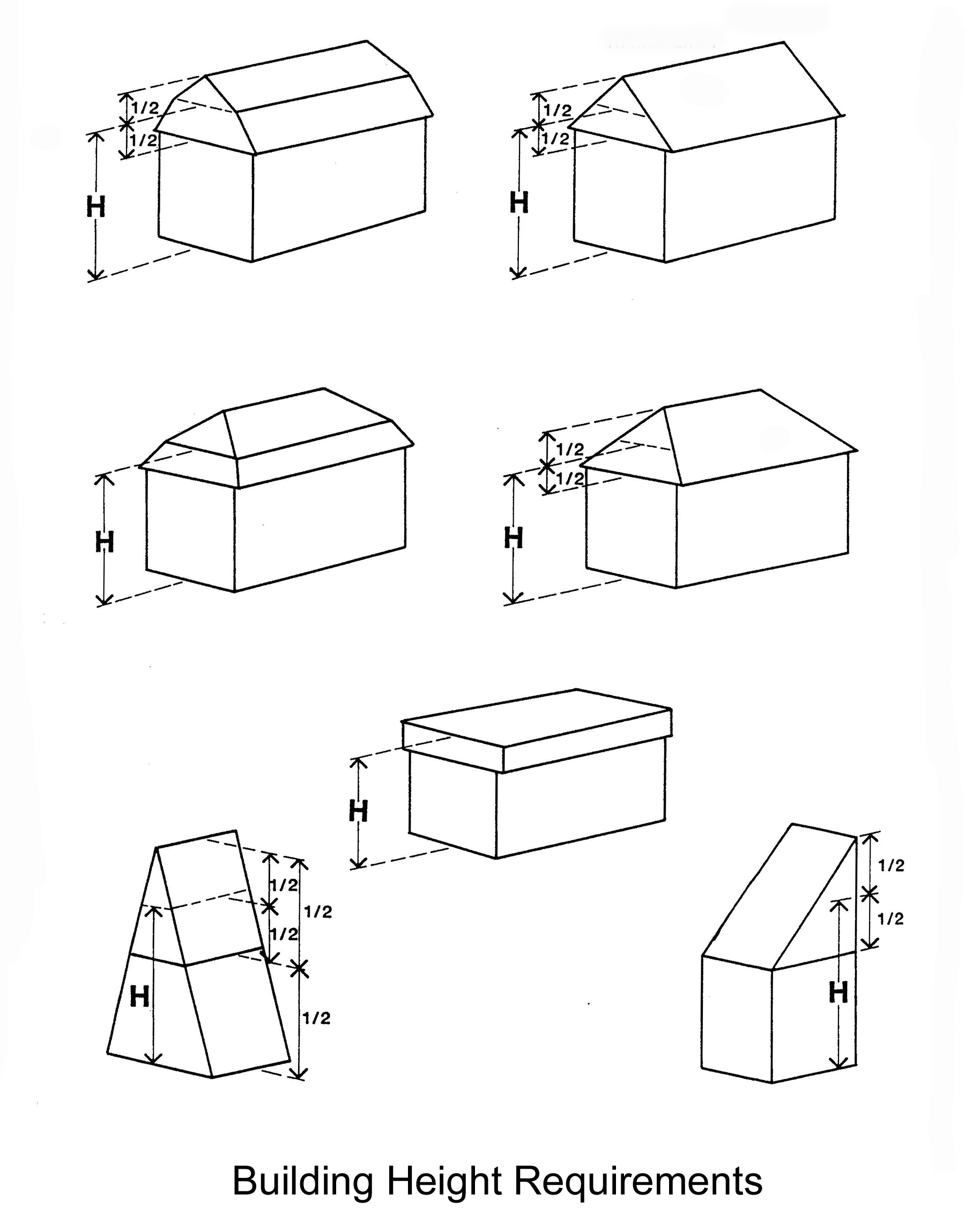 BUILDING HEIGHT REQUIREMENTS (see illustration following definitions).