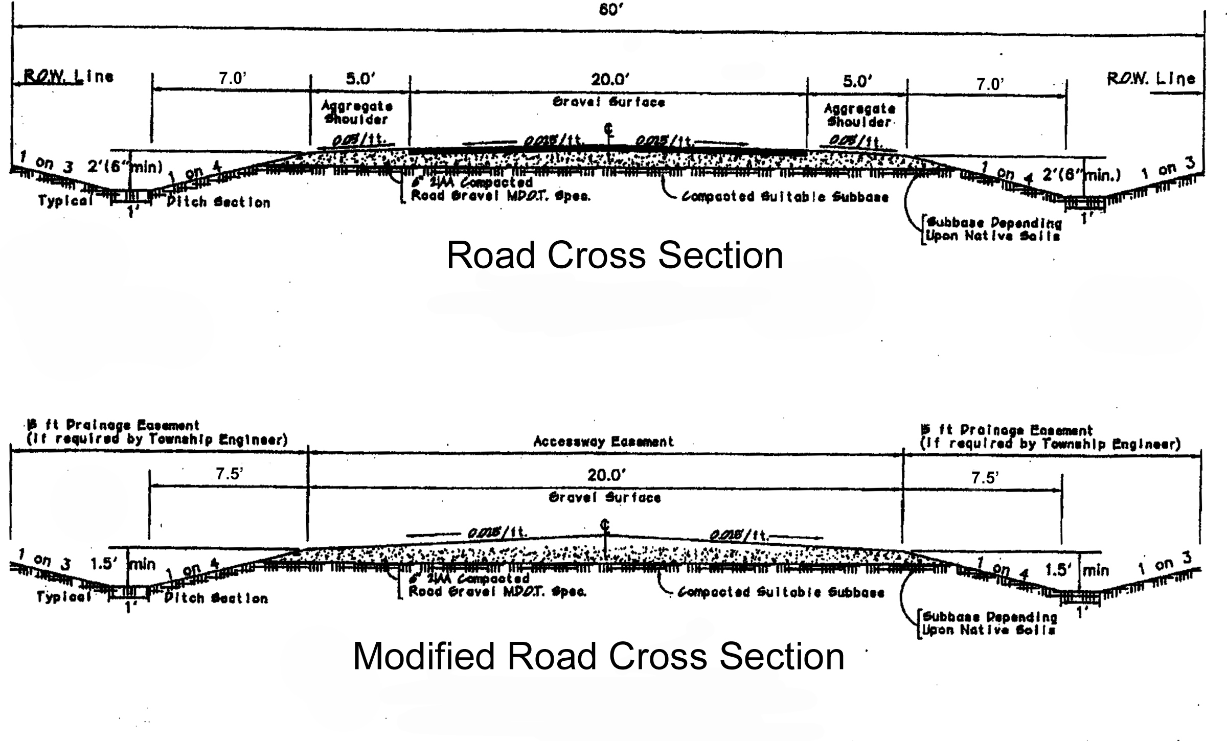 Standard "C" road: The gravel road standard currently approved by the Oakland County Road Commission.