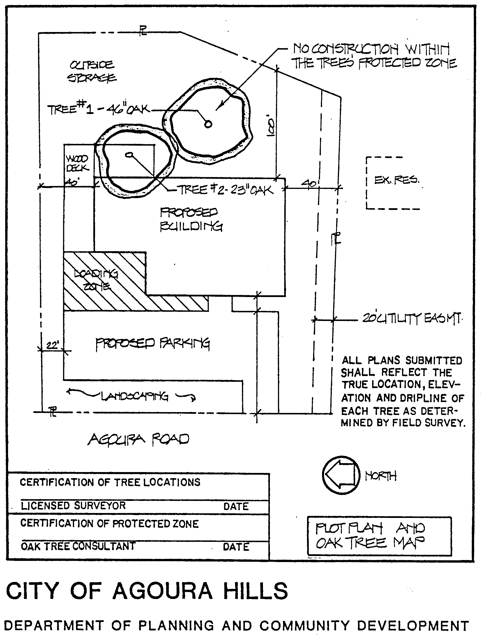 Additionally, the plan must show all lateral lines serving the residences. To be completely effective, the plan must include the surveyed locations of all oak trees on the project as well as an accurate plotting of the protected zone to within one (1) foot.