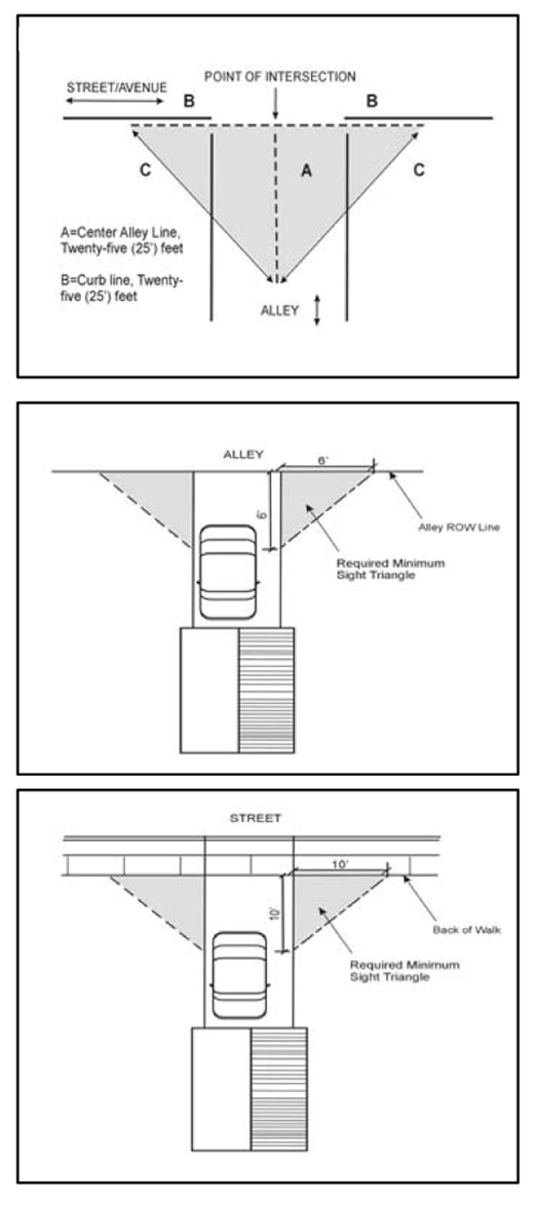 Entry of autos from lot to street. The entrance of automobiles from the lot to the street shall be approximately at right angles or radial to street lines.