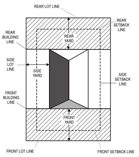 Yard, rear: The yard extending across the full width of the lot, extending between the rear lot line and the rear building line.
