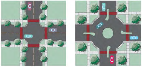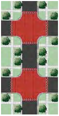 When pedestrian crossings are provided at mid-block locations, raised crosswalks (or other traffic-calming measure(s) identified in Subsection 407.141(j)) shall be located at all points where the pedestrian crossing traverses the lane of vehicle travel. When pedestrian crossings are provided at intersection locations, the requirements in intersection design and traffic calming, as outlined in Subsection 407.141(j), shall be followed.