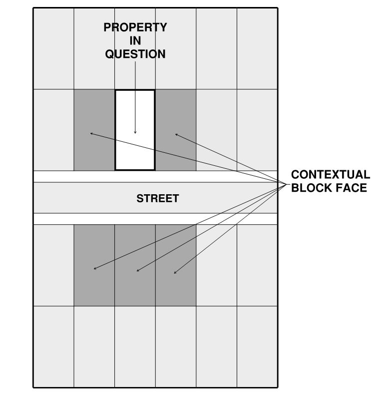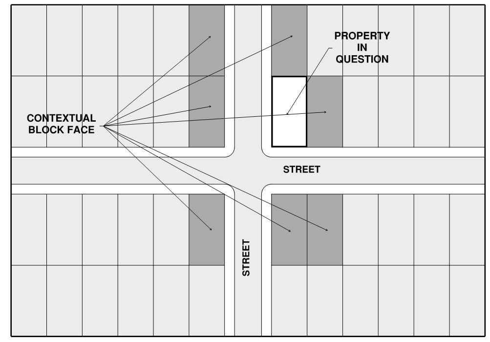 All property that touches the property in question and any property that directly faces (and, in the case of a corner lot, diagonally faces) the property in question.