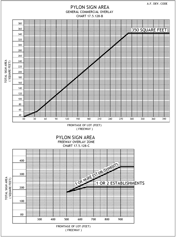 CHART 17.5.128-E Sign Area Versus Measurement Distance | Area of Sign (sq. ft.) | Measurement Distance (ft.) |