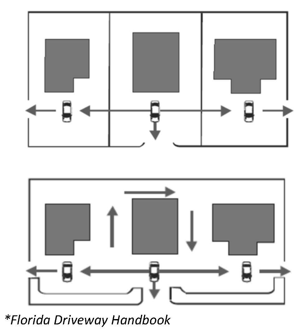 All access to outparcels must be internalized using the shared circulation system of the principal development or retail center. This access shall be designed to avoid excessive movement across parking aisles and queuing across surrounding parking and driving aisles.