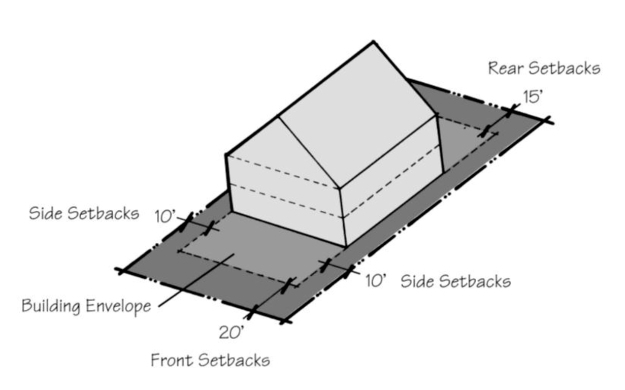 Physical features. If, on lots <e; 15,000 square feet in the residential, commercial, and resort districts, or on lots less than 80 feet wide in residential districts, site constraints, such as stands of mature trees, rock outcroppings, slopes over 30 percent, wetlands, highway setbacks, or other permanent obstacles, are present within the building envelope defined by the setbacks, the building envelope may be shifted on the lot by reducing the rear setback to a minimum of 10 feet, and the side setback to a minimum of five feet on one side, but the total area of the building envelope shall remain the same. However, the front setback shall not be reduced.