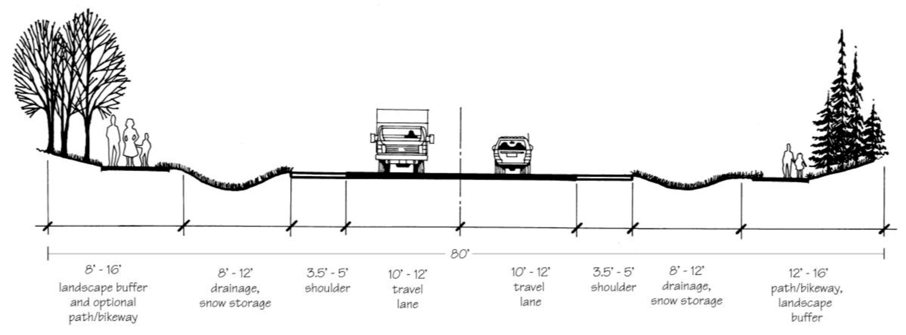 A general description of the traffic and pedestrian circulation system proposed for the petition area, showing connections between land uses, neighborhoods, and proposed public schools, parks, open space areas, and trails/bikeways;