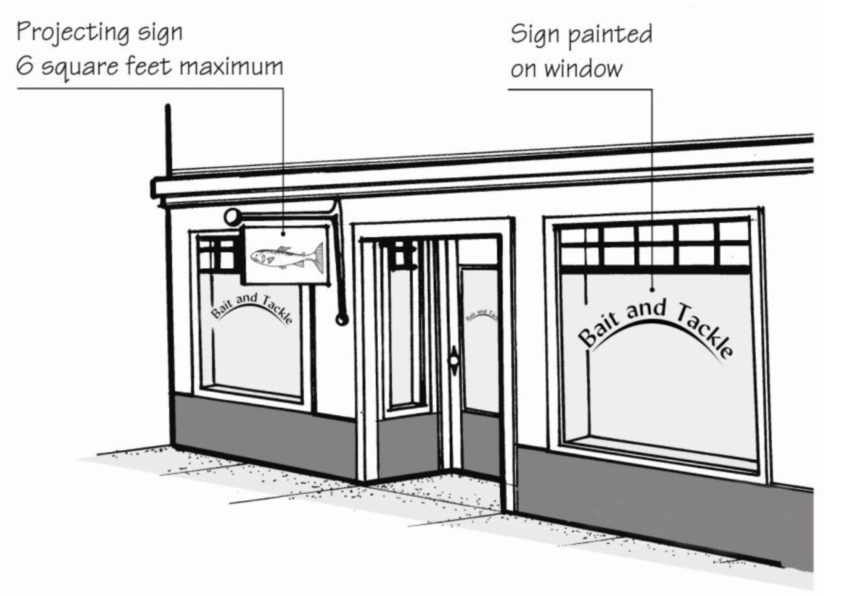 Retail/commercial use with a sideyard entrance, the portion of the store facing the street: At least 50 percent glass designed as display windows.