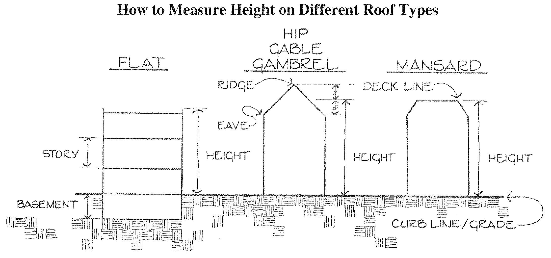 Building height. The vertical distance from the mean grade elevation taken at the fronting street side of a structure to the parapet or roofline of a flat roof, the eaves of a pitched roof, or the deck line of a mansard roof. Towers, spires, steeples, and enclosed rooftop mechanical equipment are not counted in height measurements.