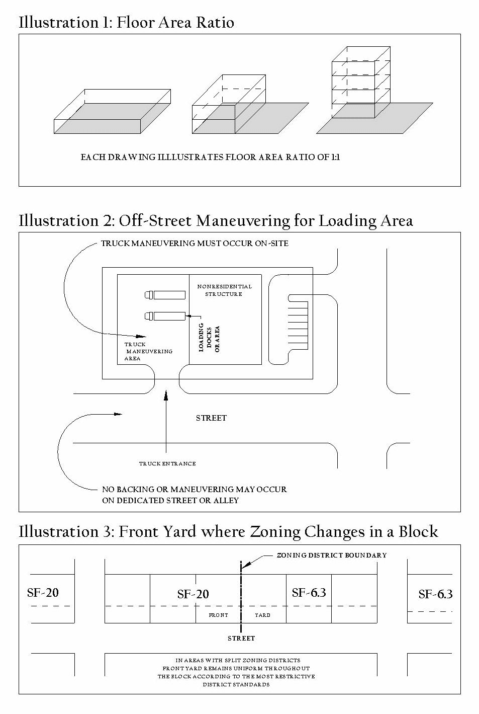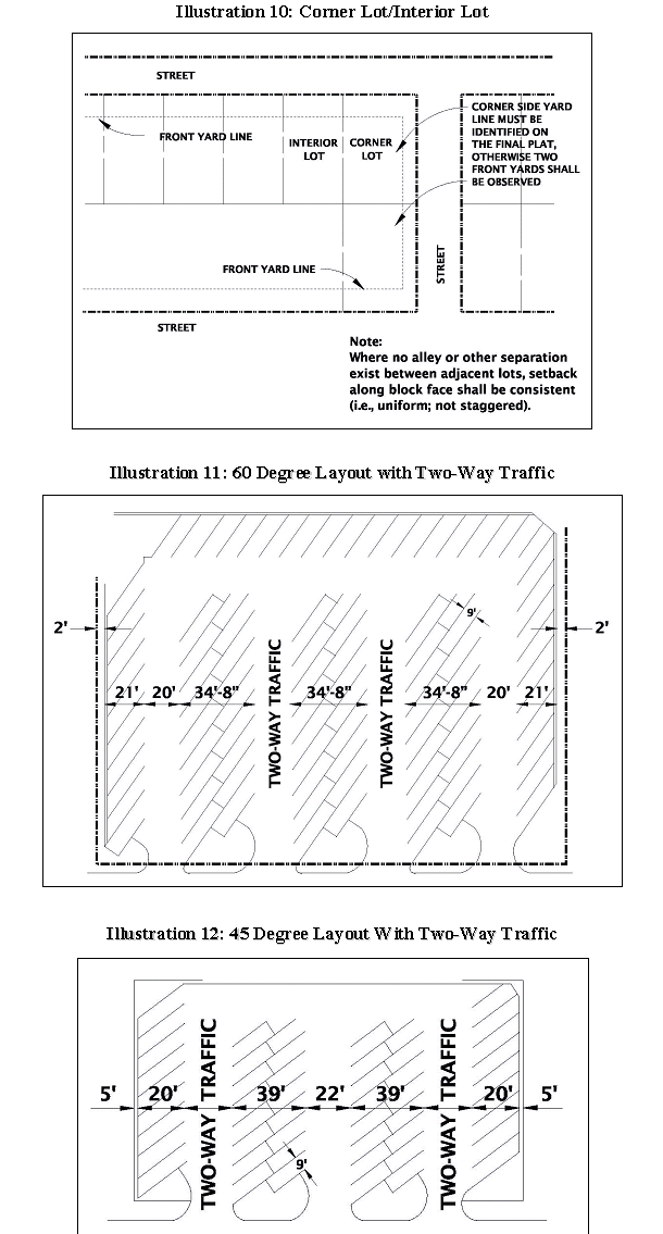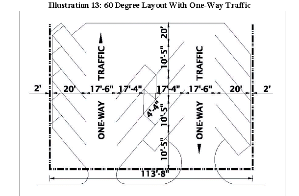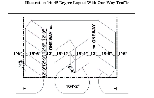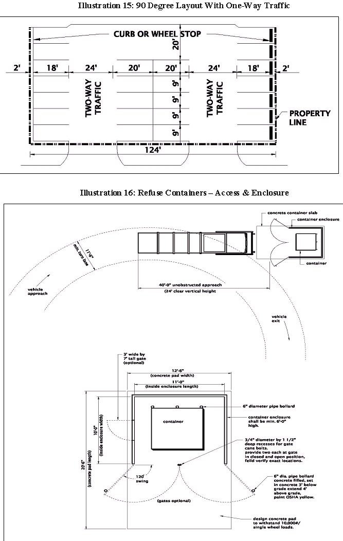 Parking space configuration, location, arrangement, size and circulation in all districts shall be constructed according to illustrations 11 through 15.