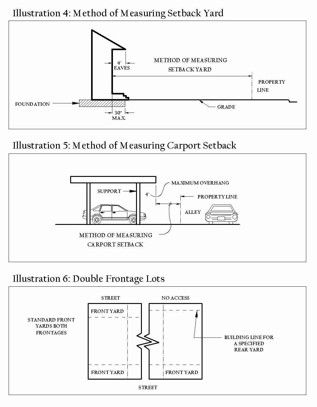 Yard: An open space at grade between a building and the adjoining lot lines, unoccupied and unobstructed by any portion of a structure from the ground upward, except where otherwise specifically provided in this chapter that the building or structure may be located in a portion of a yard required for a main building. In measuring a yard for the purpose of determining the width of the side yard, the depth of a front yard or the depth of a rear yard, the shortest horizontal distance between the lot line and the main building shall be used (see Illustration 7).