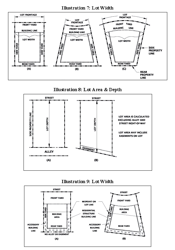 Yard, side: The area between the building and side line of the lot and extending from the front lot line to the rear lot line and being the minimum horizontal distance between a side lot line and the outside wall of the side of the main building (see Illustration 9).