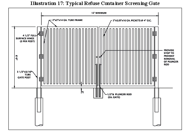 Refuse storage facilities placed in a parking lot shall not be located in a designated parking or loading space. Each refuse facility shall be located so as to facilitate pickup by refuse collection agencies and ease of egress from the site without having to back up further than 20 feet and without having to go the wrong way in a traffic aisle.