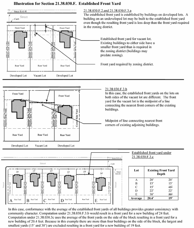 8 The front yard for principal uses shall be the minimum specified in the table or the established front yard pursuant to pursuant to Chapter 21.38.