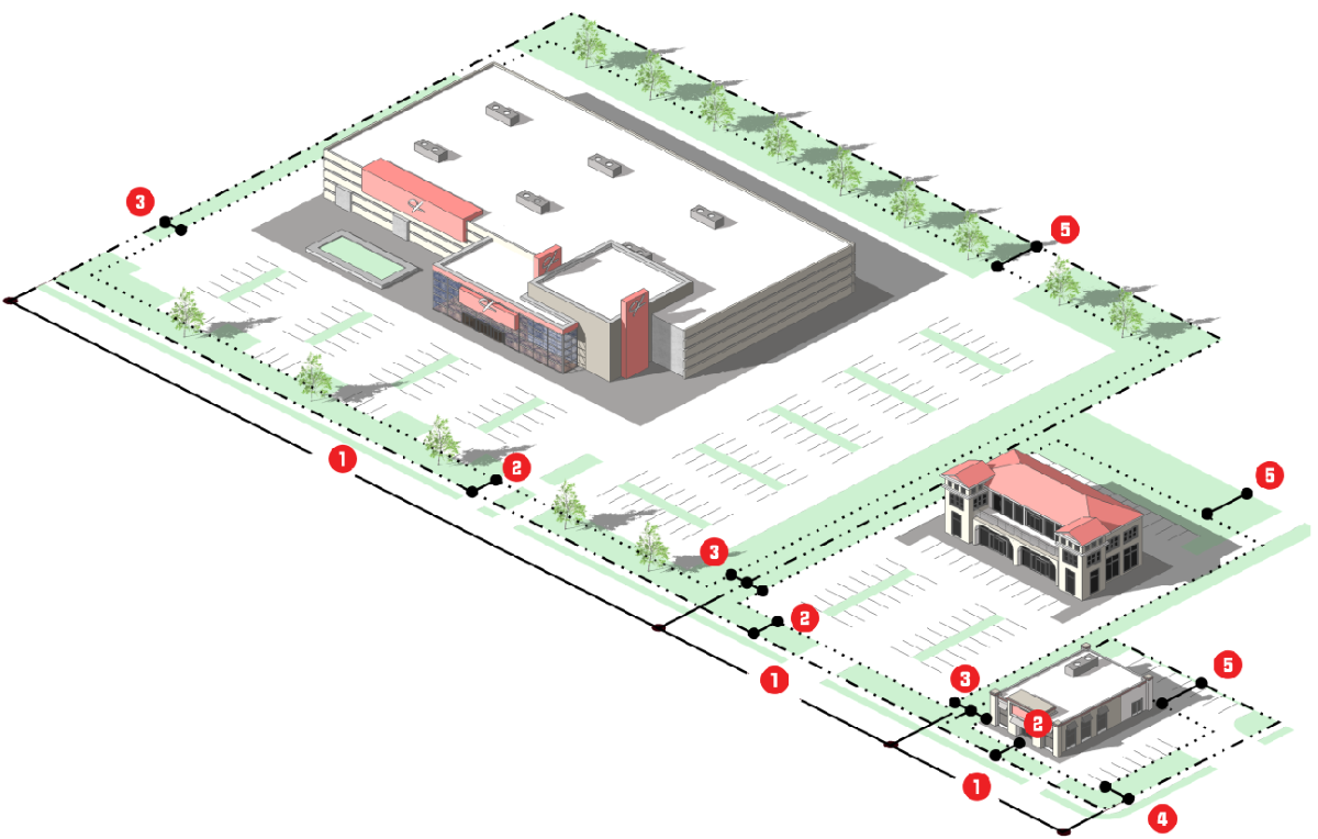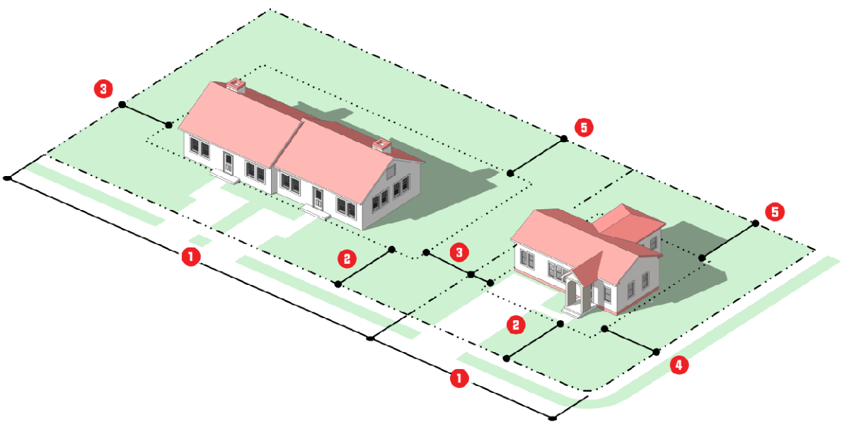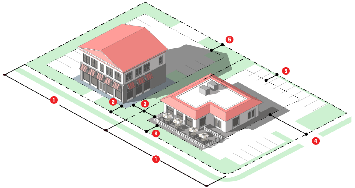 Lot layouts, setbacks, street layouts, alleys or sidewalks;