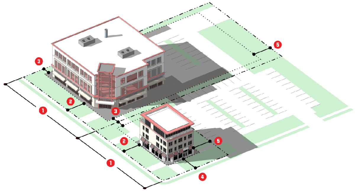 Setbacks or required yards;