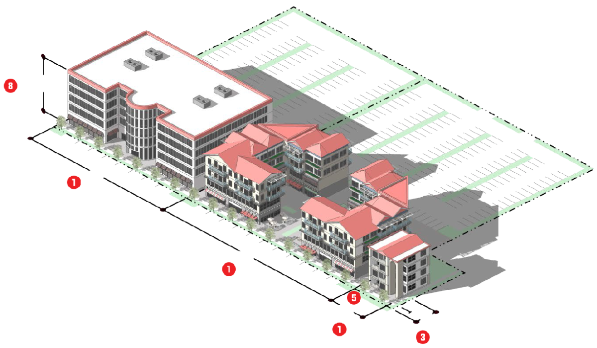 Create suitable environments for various types of mixed-use development, where business, office, retail, and residential development is designed and integrated in compatible ways;
