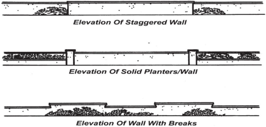 Wall design shall be compatible with the architectural character of the primary structures and the surrounding area (Figure 9.47.070-A).