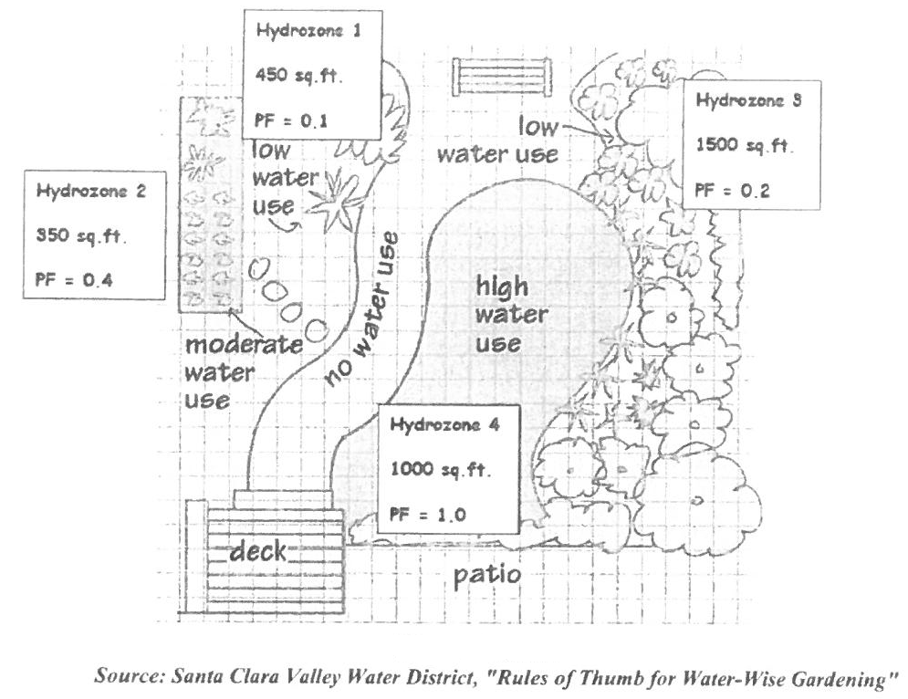 On the landscape design plan and irrigation design plan, hydrozone areas shall be designated by number, letter, or other designation. On the irrigation design plan, designate the areas irrigated by each valve, and assign a number to each valve. Use this valve number in the Hydrozone Information Table. This table can also assist with the irrigation audit and programming the controller.