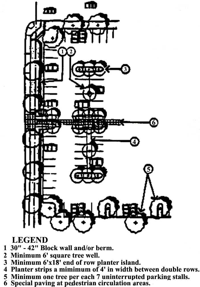 Provide maximum shade on ground surfaces to reduce the "urban heat island effect" produced by large expanses of unprotected paved areas.