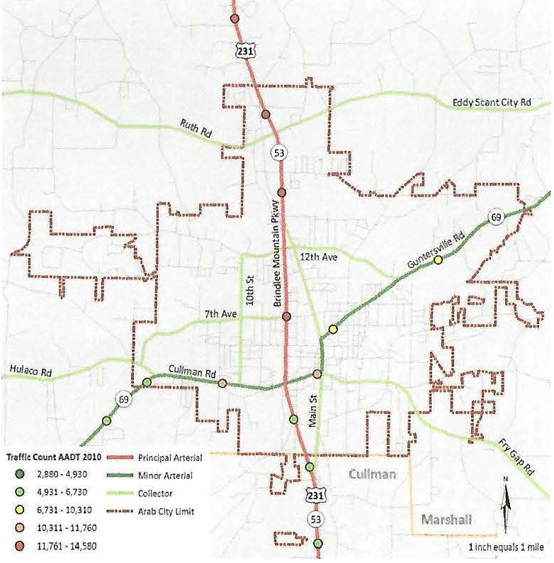Recommend any changes in the mapping of Arab which would be required in order to accommodate the expected 20-year growth projections of the Comprehensive Plan for residential, industrial, commercial, and other land uses.