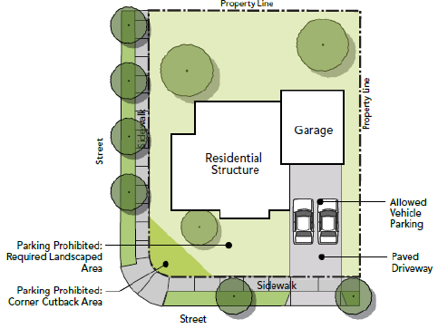 Off-Street Parking Location. Off-street parking shall not be located within any required clear site or vehicular visibility area on a corner lot.