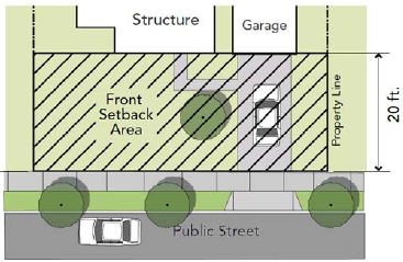 Exception. Where the front property line is located beyond the curb (i.e. within a street or common driveway), the front setback is defined as the minimum distance between a structure and the edge of curb.