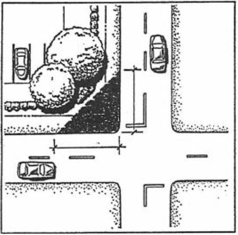 Clear visibility triangle: means that area formed by connecting a point on each curb line or edge of pavement to be located at the distance from the intersection of the street centerlines as required, and a third line connecting the two points. (See Figure below.)