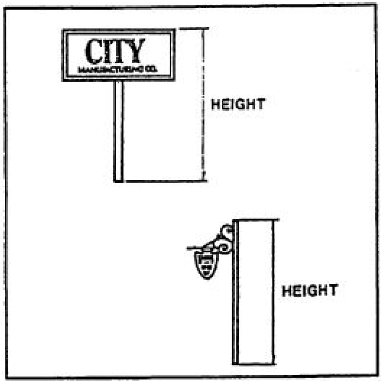 Sign height: means the vertical distance from the finished grade at the base of the supporting structure to the top of the sign, or its frame or supporting structure, whichever is higher. (See Figure below.)