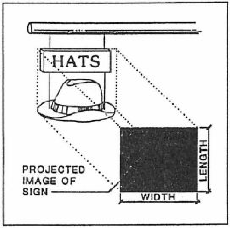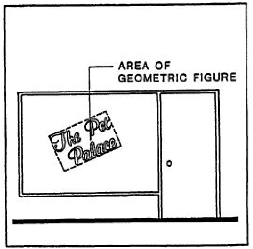 For building signs, the sign area shall be the area within the smallest geometric shape that touches the outer points of raised portions of the sign or of all borders or trims, or in the absence of such border or trim, the outer points of the letters or pictures. (See Figure below.)