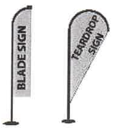 Blade sign (aka feather sign, teardrop sign): means a temporary sign that is constructed of cloth, canvas, plastic fabric or similar lightweight, non-rigid material and that is supported by a single vertical pole mounted into the ground or on a temporary, readily movable, structure.