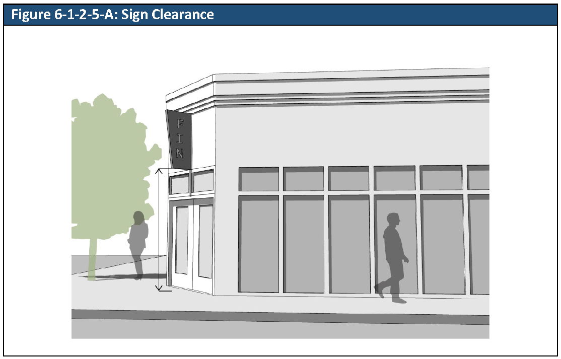 Sign Clearance. Sign clearance is the distance between the bottom of a sign face or structural element that is not affixed to the ground and the nearest point on the ground-level surface under it.