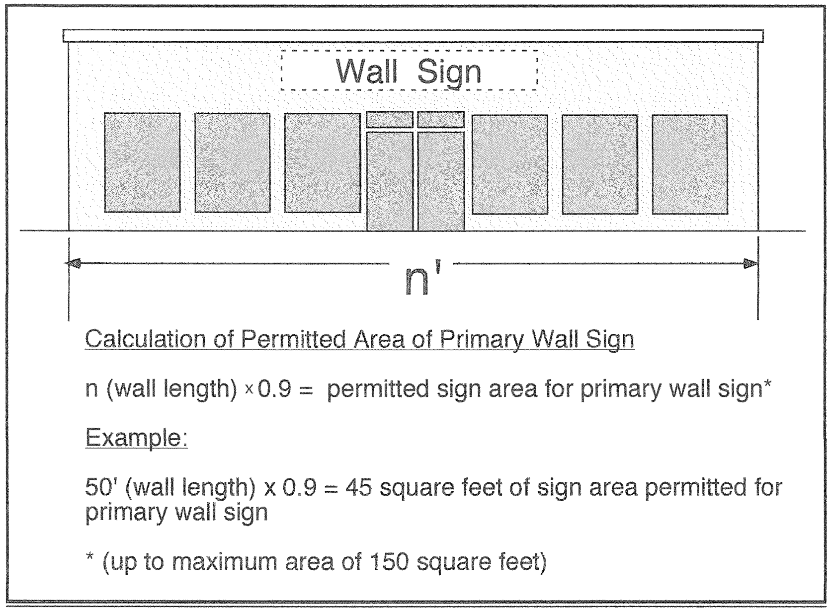 Calculation of Area: 0.5 square foot of sign area for each lineal foot of building frontage of the business to which sign is attached, up to a maximum area of fifty (50) square feet.