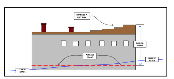 Figure 6.1 C-1: Building Heights for a Flat Roof & Uneven Grade