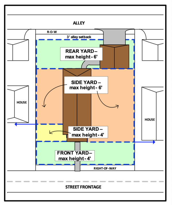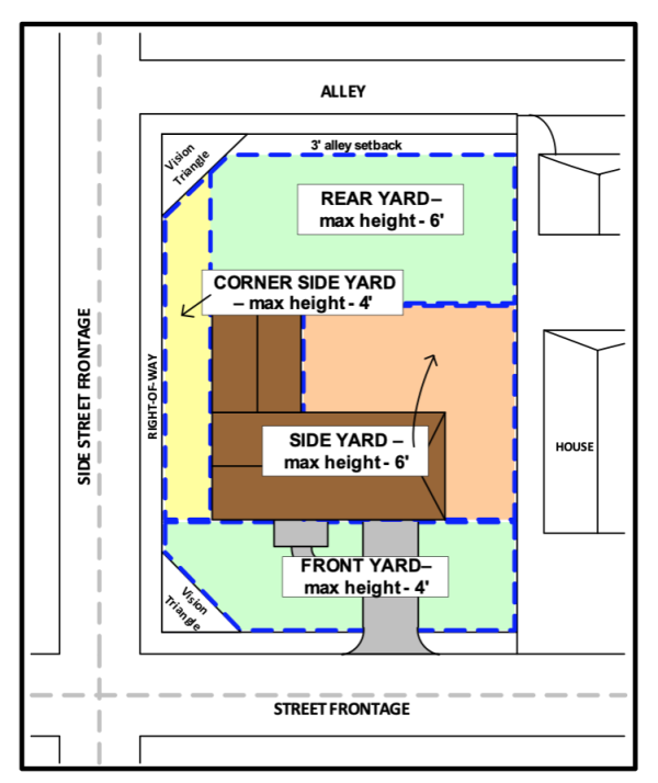 Figure 6.5 C-1a: Fences with Vision Triangles (Corner Parcels)