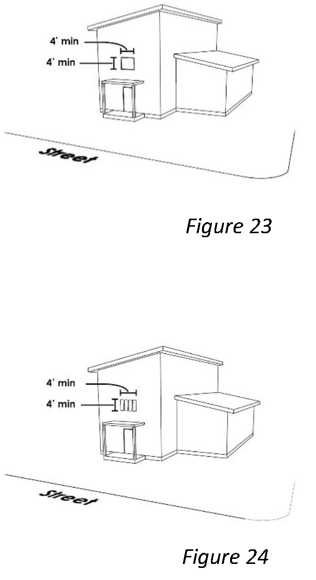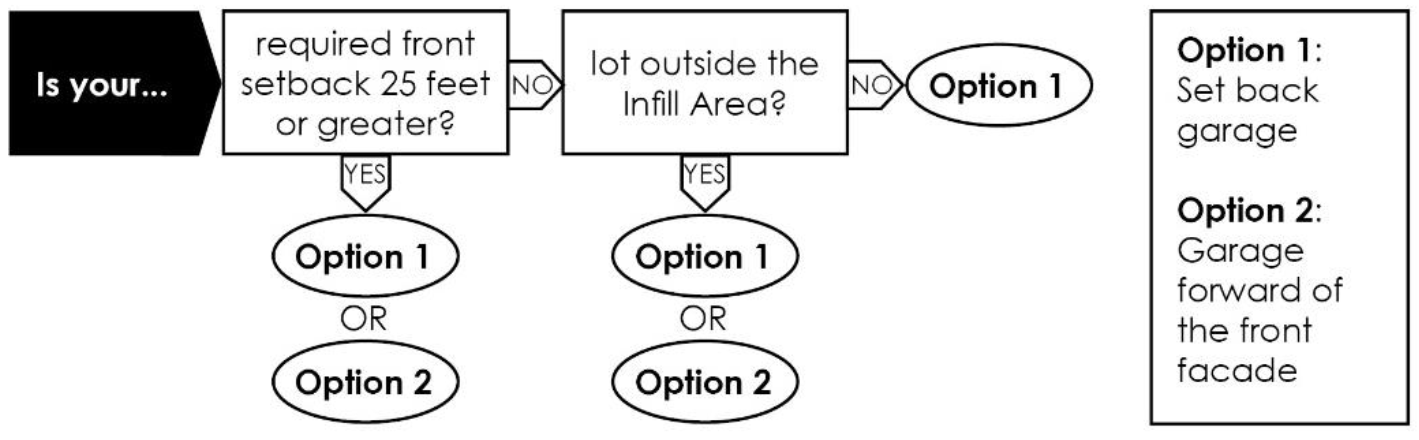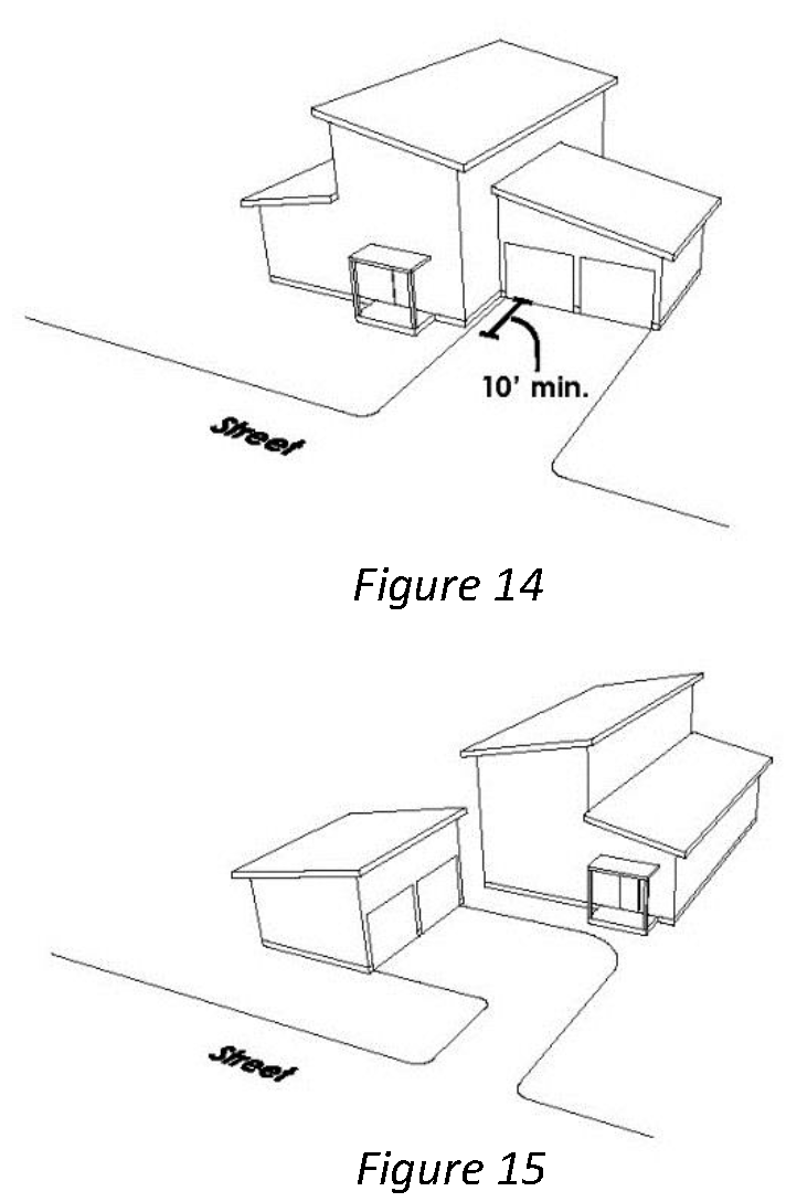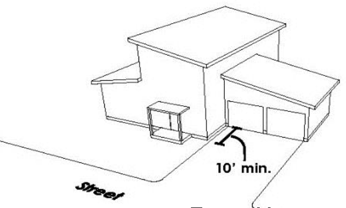 Front-Most Element. The front most building feature associated with a primary building or garage. In many cases, this element may be located forward of the front façade, such as an open front porch or projecting garage overhang. See Figure 4.