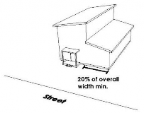 One-Story Stepdown. The principal building shall include a one-story component on one (1) side of the building that remains one (1) story from the front façade to the rear wall. The width of the one-story portion shall be a minimum of twenty percent (20%) of the building's (or unit's) overall width. The one-story portion may be fully enclosed and used as living area. Accessible space (whether it is a deck, porch or enclosed area) shall not be allowed over the first story element; however, accessible space over the remaining first story elements on the front façade shall not be precluded. See Figure 12.
