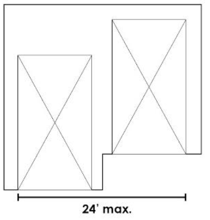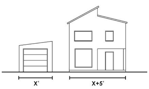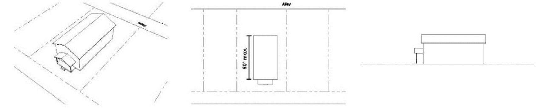 Maximum Sidewall Depth. A principal building shall be no greater than fifty (50) feet in depth, as measured from the front-most wall of the front façade to the rear wall. An accessory building that is completely separated from the main building is permitted. Garages, sheds and accessory dwelling units are examples of appropriate uses for an accessory building. See Figure 5.