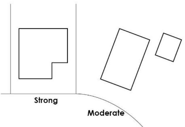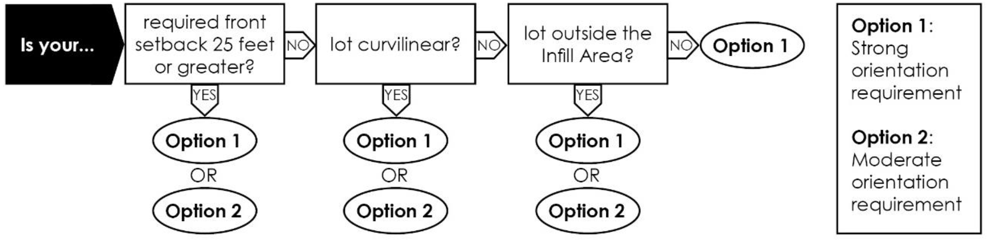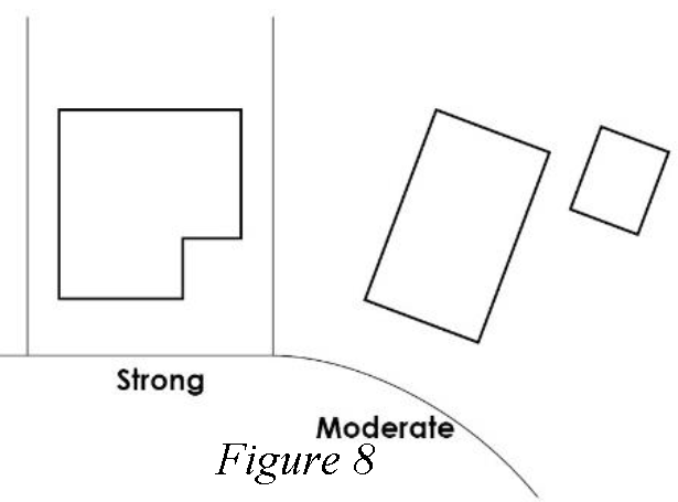 Moderate Orientation Requirement. The front façade of a building shall face the street. On a corner lot, one street-facing façade shall face each intersecting street. See Figure 8.