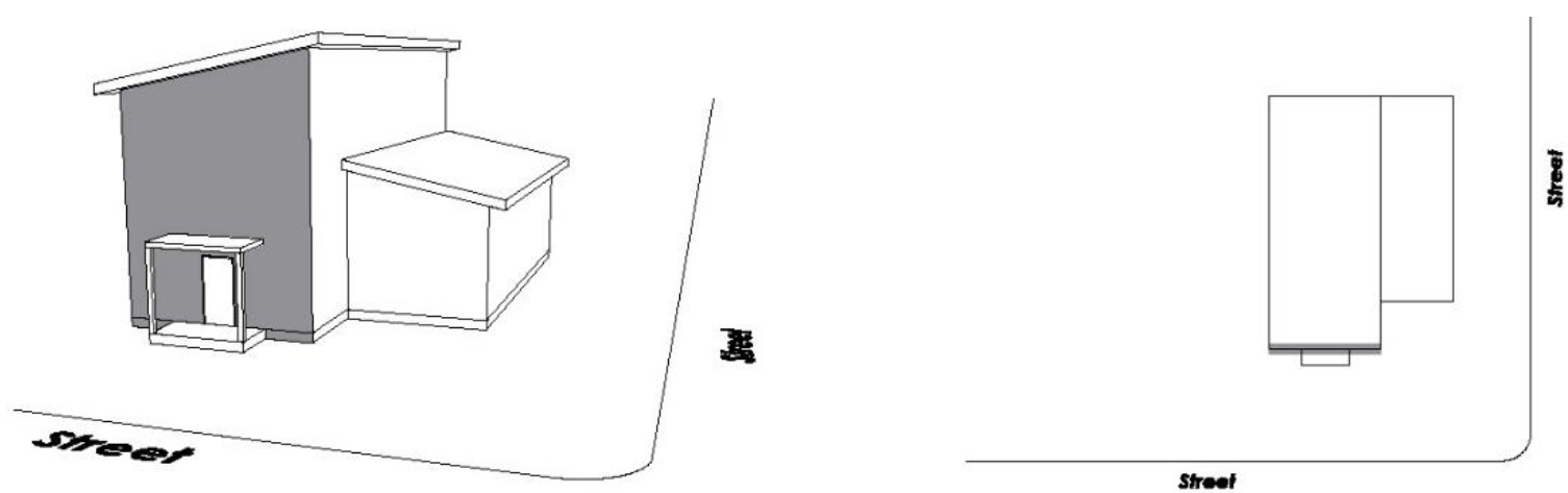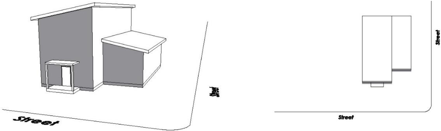 Street-Facing Façade. Any side of a building that faces a street. A street-facing façade may refer to multiple wall planes on a building face that face the street or right-of-way. See Figure 2.