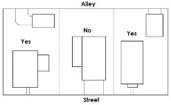 Intent. This standard seeks to reduce the overall perceived mass and bulk of buildings on a property as viewed from all sides. Designs should promote light and air access between adjacent properties. Designs should articulate building walls by utilizing multiple forms to break up large expansive wall planes. Buildings should include massing and articulation that convey forms that are similar in massing to historic Aspen residential buildings. This standard is critical in the Infill Area where small lots, small side and front setbacks, alleys and historic Aspen building forms are prevalent. Designs should change the plane of a building's sidewall, step a primary building's height down to one-story in the rear portion or limit the overall depth of the structure.