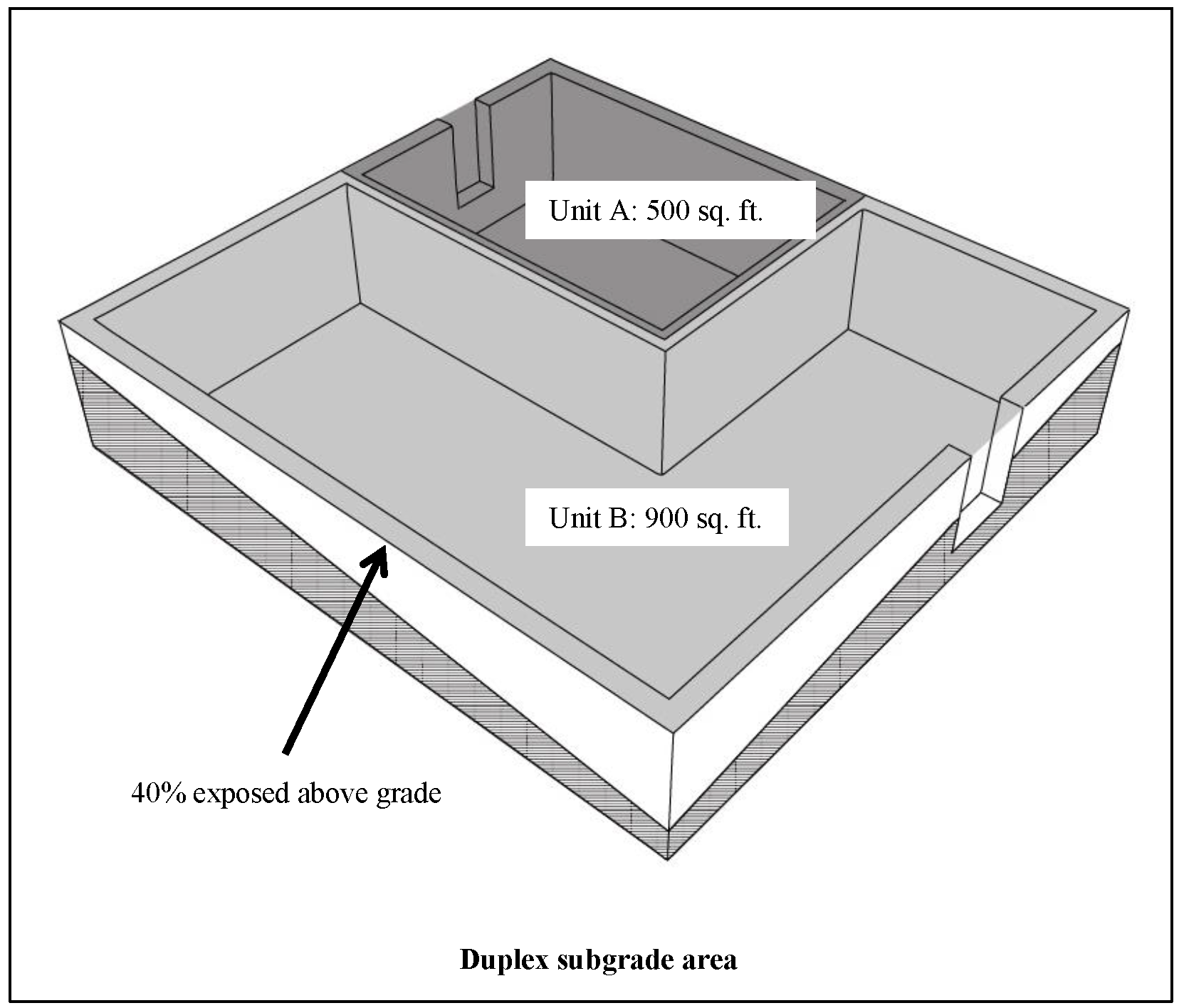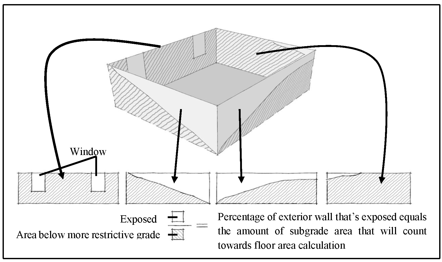 Only exterior surface area above finished grade shall be used in the determination of demolition. Sub-grade elements and interior wall or structural elements, while potentially necessary for a building's integrity, shall not be counted in the computation of exterior surface area.