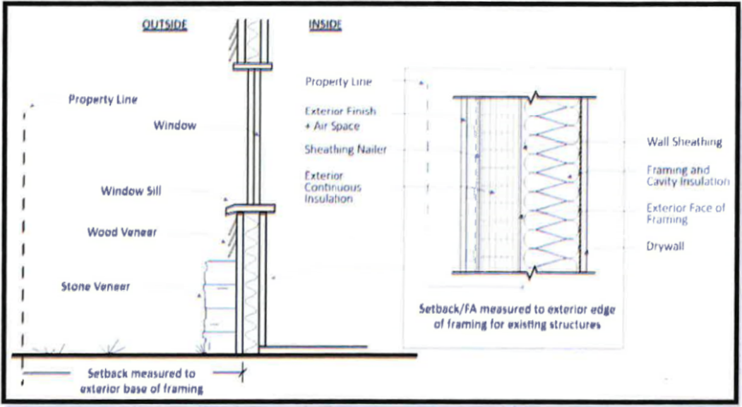The surface area of all existing (prior to commencing development) exterior wall assemblies above finished grade. Not counted in the existing exterior surface area calculations shall be all existing fenestration (doors, windows, skylights, etc.).