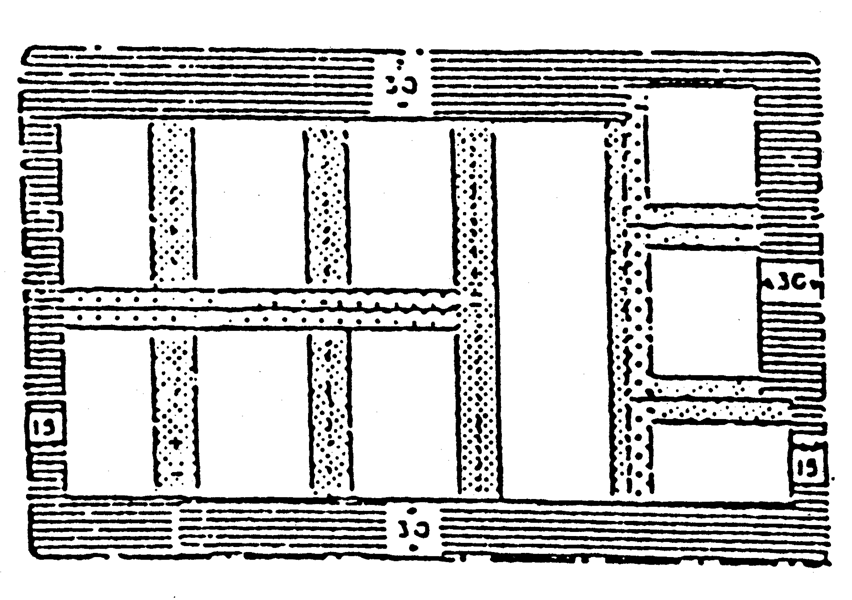 The gross area of lot 1 is thus the area within its boundaries plus the hatched area at the top and side including the rectangle marked a. The gross area of lot 2 is its net area plus the hatched area across its front.