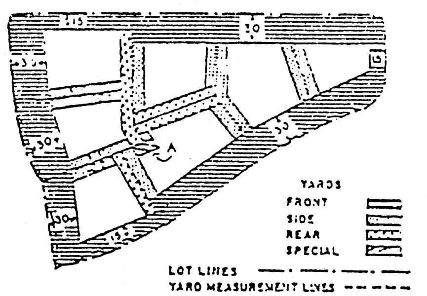 Diagram indicating location and method of measurement of yards on regular lots: The diagram which follows indicates location and method of measurement of yards on regular lots.