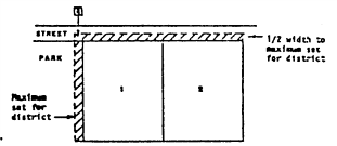 Half-depth front yards adjacent to streets other than in frontage: Where portions of the lot adjoin a street other than in frontage, as described in (a) above, yard parallel to the street and at least half the width of the front yard required in the district shall be provided. Such yard shall be subject to limitations on uses as provided for front yards. Depth of such yards shall be measured as indicated in (f) below.