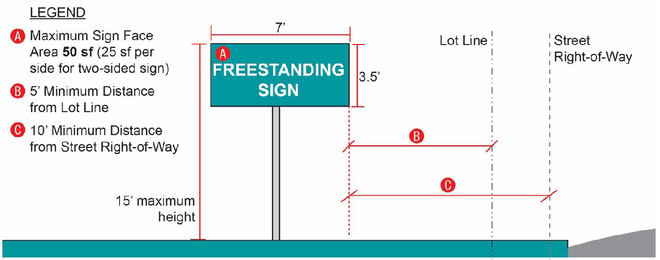Freestanding and Monument Signs. Any freestanding or monument sign greater than three and one-half (3½) feet in height as measured from the grade of the road upon which it fronts shall be located outside the required sight distance triangle.