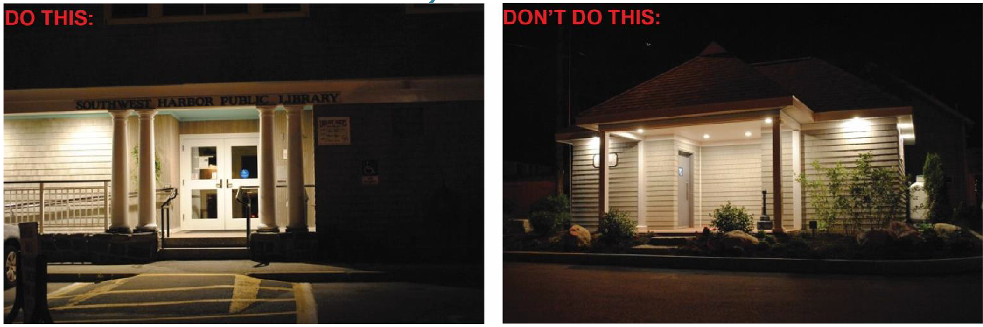 All illuminated signs shall have their lighting directed in such a manner as to illuminate only the face of the sign and does not shine directly into or cause glare onto a public right-of-way or residential uses.